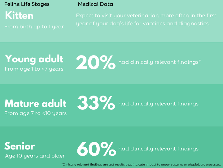 Note: This data is based on wellness profiles that included a complete chemistry profile, CBC testing, urinalysis, and for cats 7 years old and older, total T4 testing.
